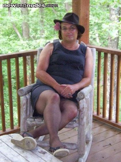 on the picnic table while camping